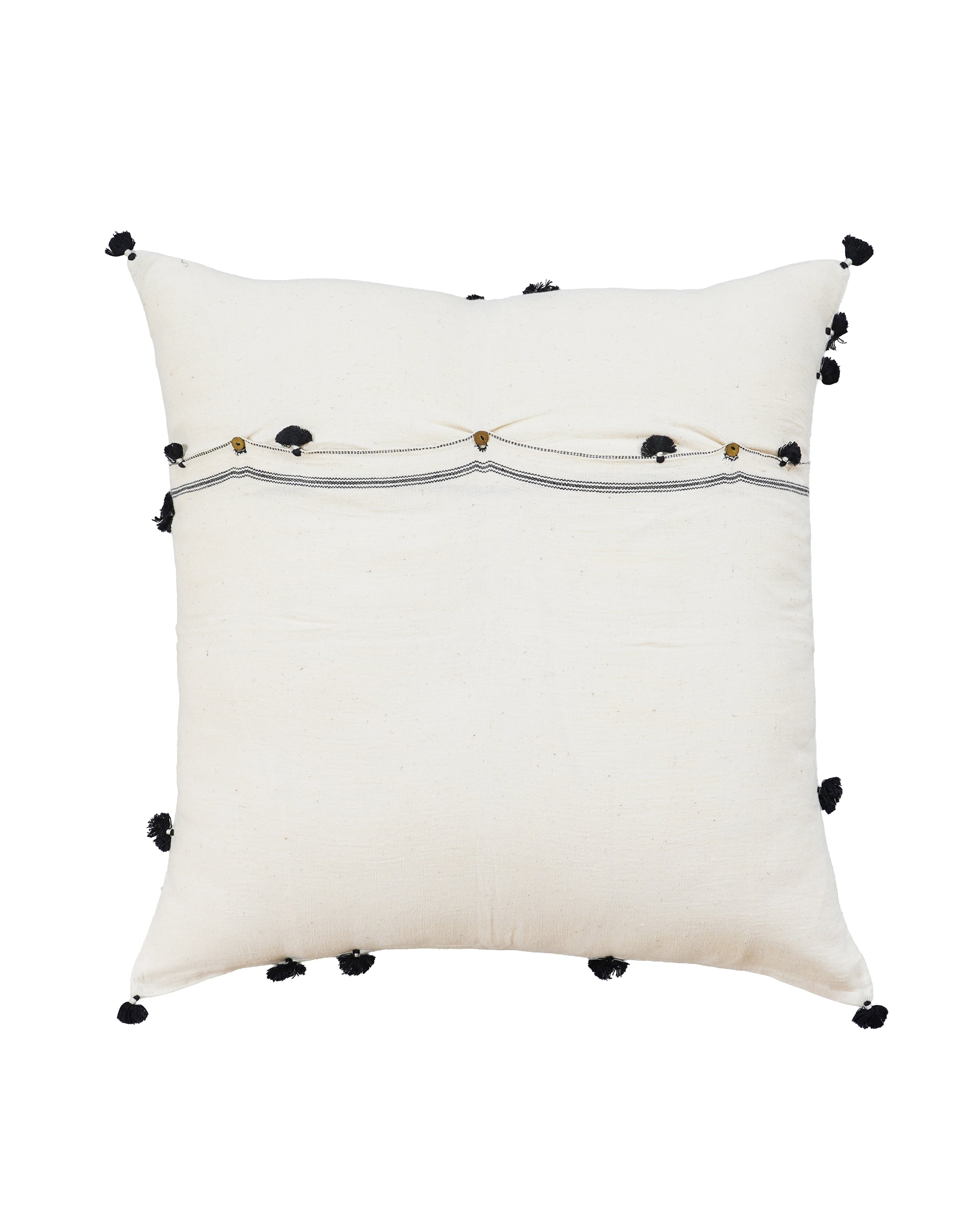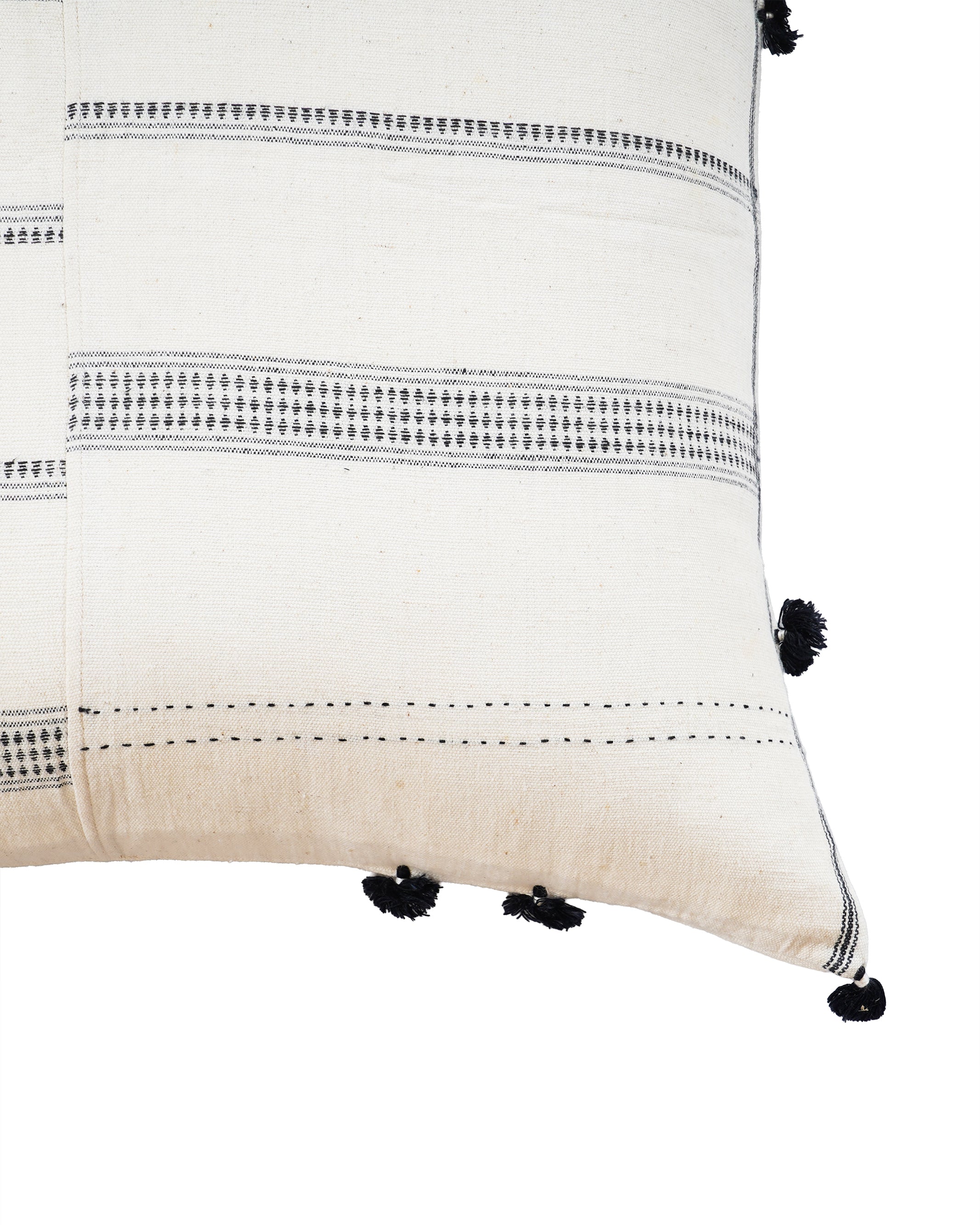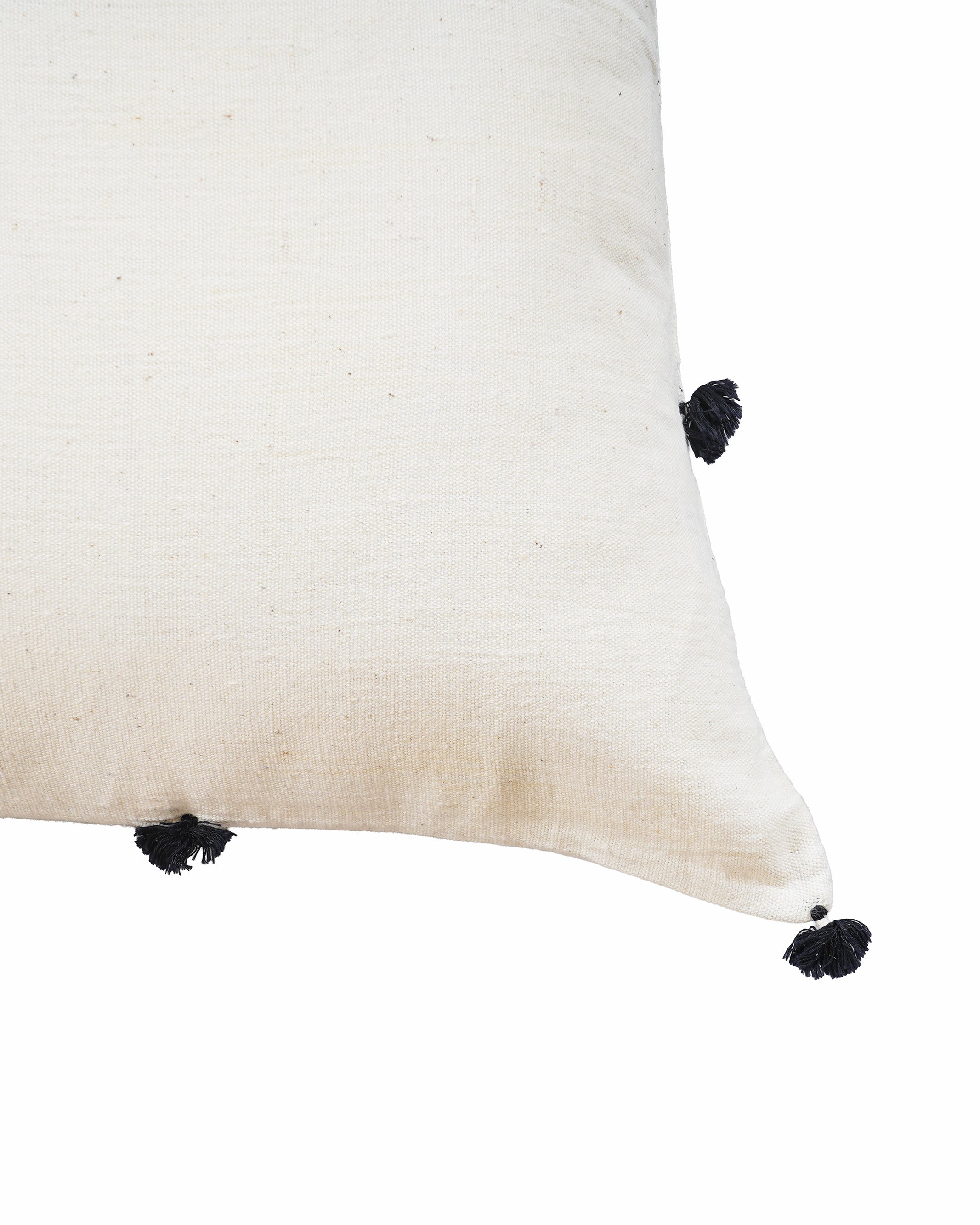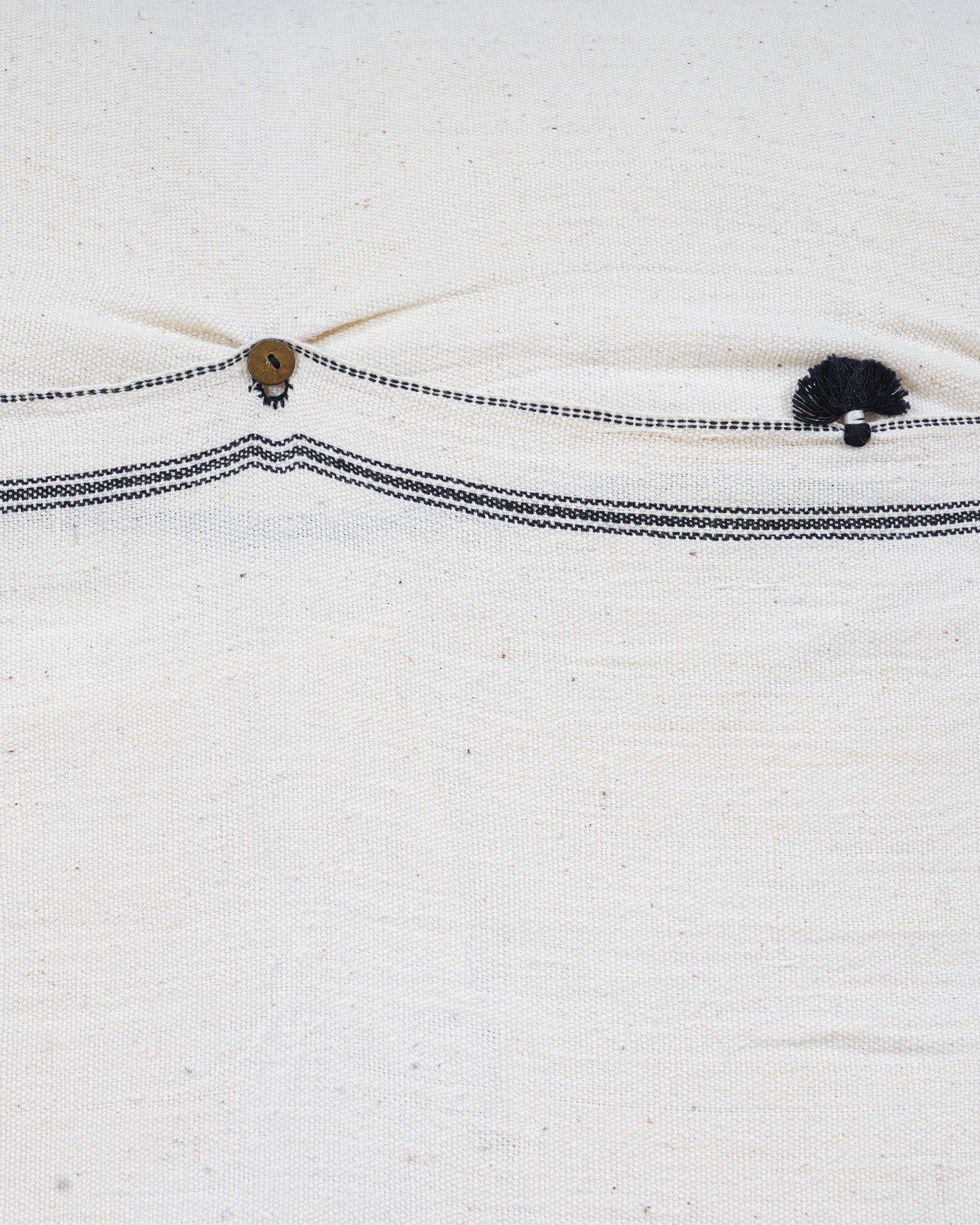 This 'Aab' cushion celebrates nature in its purest form, with breathable cotton fabric and stripped details & hand-tied tassels inspired by the elements. Handwoven using bhujodi technique, it feels like a whisper of the earth in your home. Its neutral tones and gentle texture are perfect for pairing with natural woods or earthy palettes. It’s more than a cushion—it’s a tribute to simplicity.
