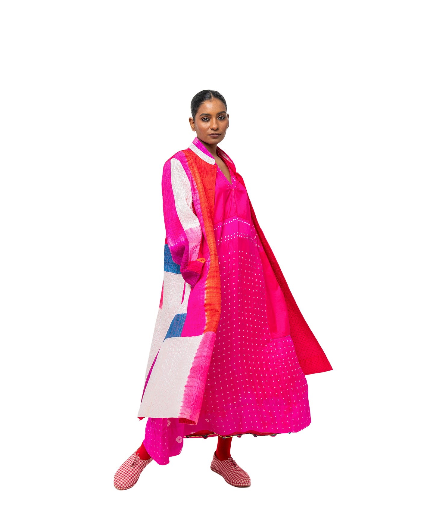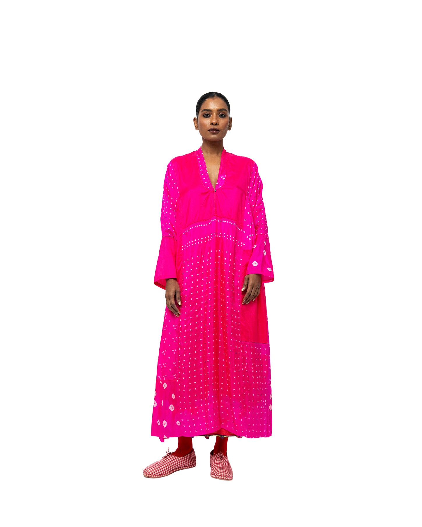 Arohi Dress in vivid fuchsia silk. Light and fluid, it is made for a relaxed, easy silhouette