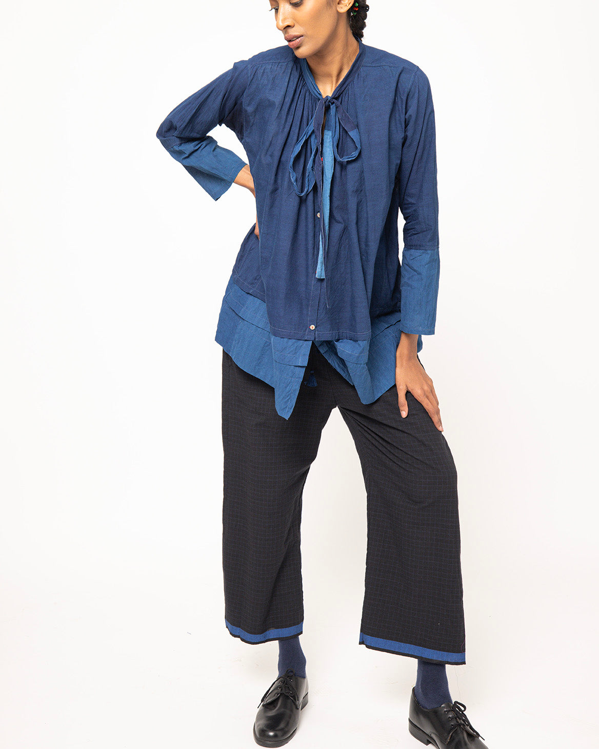 ikkat, extra weft, clamp-dye- are all located in different geographical locations. We monitor quality of these in our capacity but being handmade there do come minor errors which we do not treat as defects, sometimes a Bandhani dot may leave a slight mark or extra weft may cause slight color bleeding . These are not defect for us but features of working with handcrafted products.