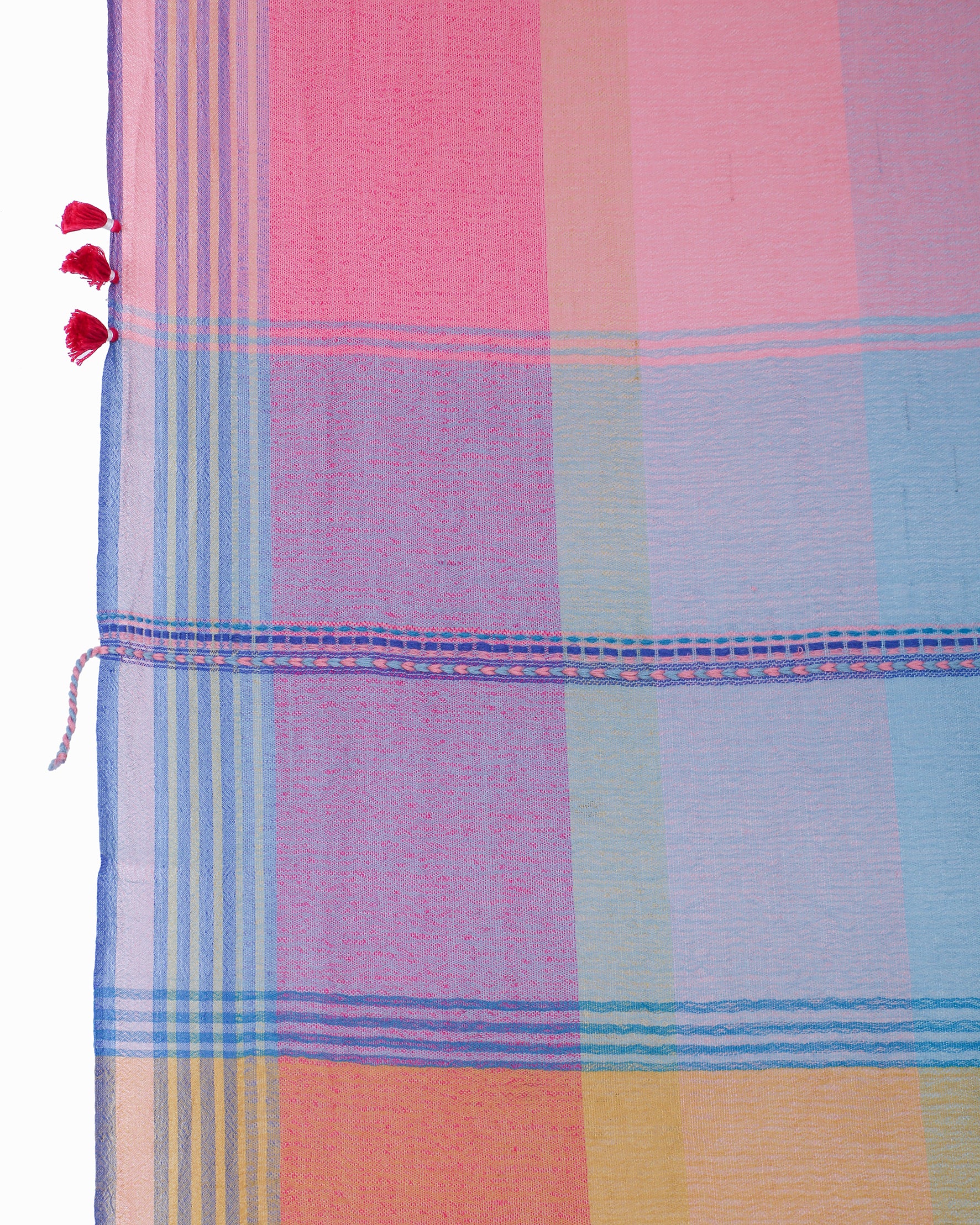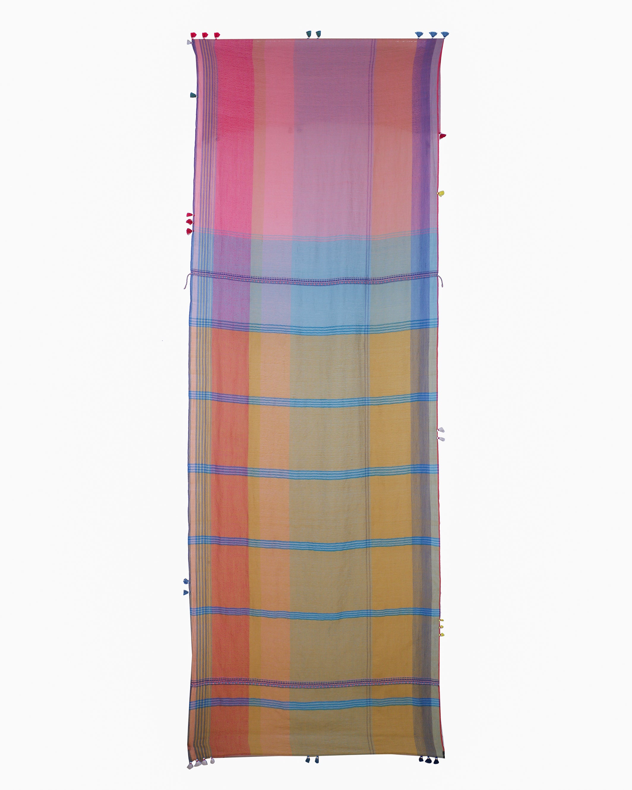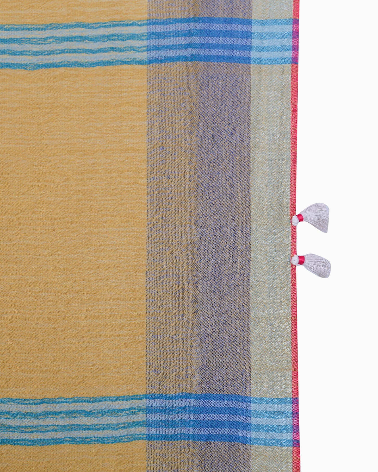ikkat, extra weft, clamp-dye- are all located in different geographical locations. We monitor quality of these in our capacity but being handmade there do come minor errors which we do not treat as defects, sometimes a Bandhani dot may leave a slight mark or extra weft may cause slight color bleeding . These are not defect for us but features of working with handcrafted products.