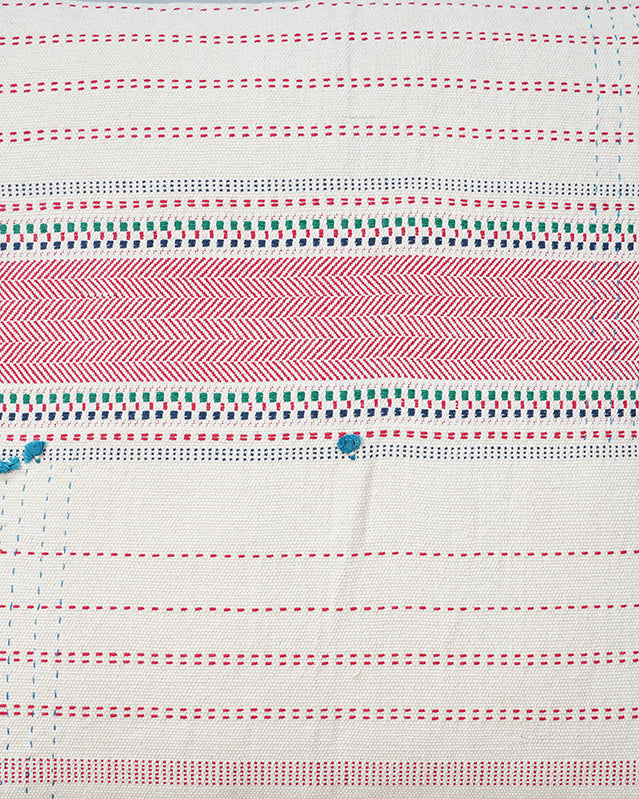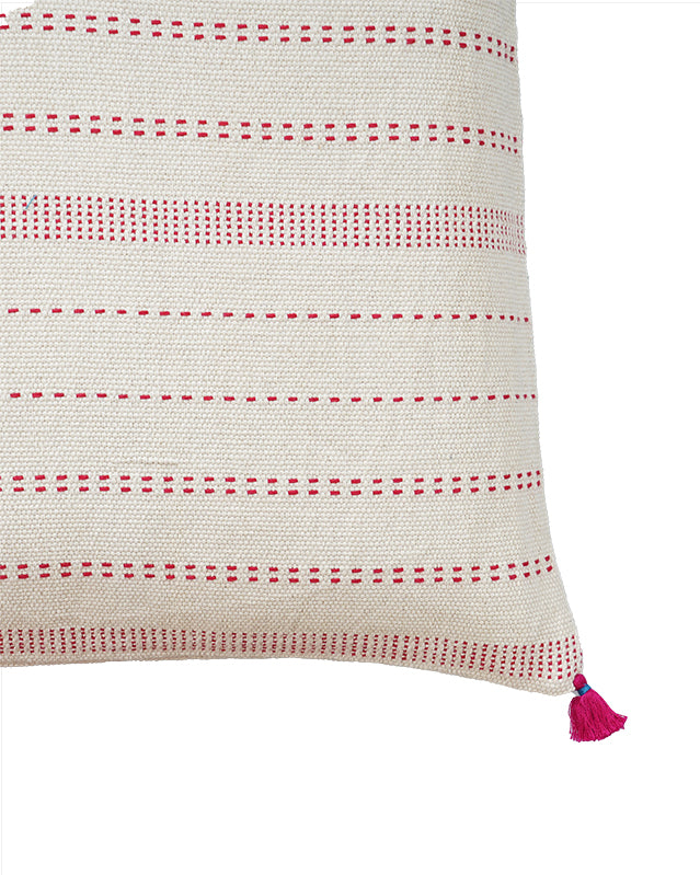 Comfortable & cosy — this 'Chaukhat' cushion is handwoven with pure cotton fabric, showcasing the bhujodi craft that gives it a rich, adorned with uniform and interesting embroidery pattern with tassels. Its understated elegance complements contemporary and traditional spaces alike. Toss it on your favorite armchair or layer it with other cushions for a cozy, inviting setup.