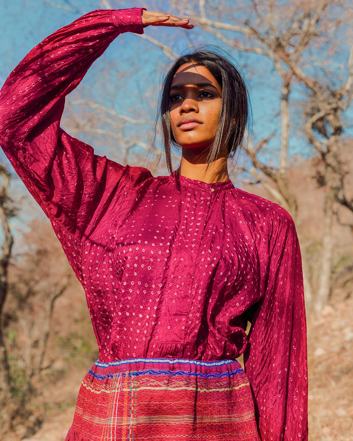 Fatehpur Crimson Bandhani Top