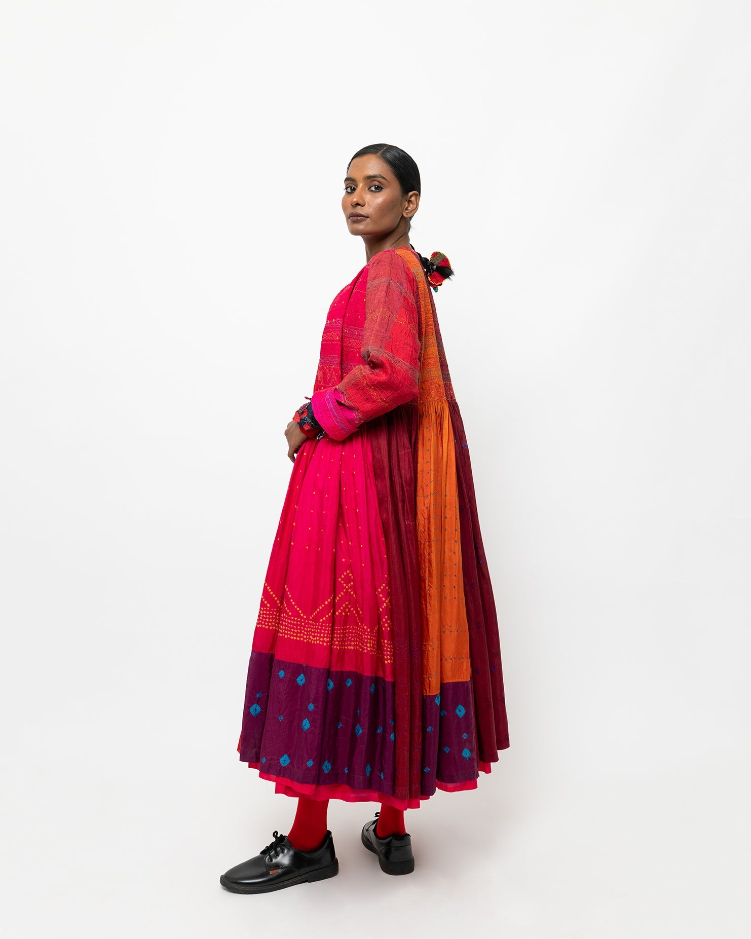 ikkat, extra weft, clamp-dye- are all located in different geographical locations. We monitor quality of these in our capacity but being handmade there do come minor errors which we do not treat as defects, sometimes a Bandhani dot may leave a slight mark or extra weft may cause slight color bleeding . These are not defect for us but features of working with handcrafted products.