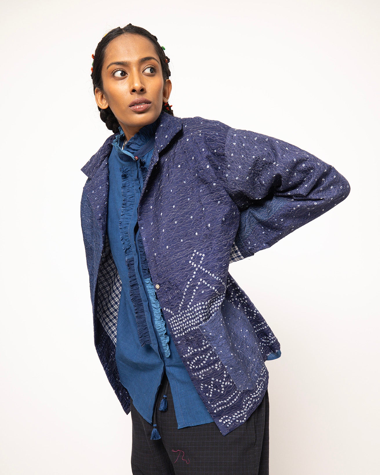 ikkat, extra weft, clamp-dye- are all located in different geographical locations. We monitor quality of these in our capacity but being handmade there do come minor errors which we do not treat as defects, sometimes a Bandhani dot may leave a slight mark or extra weft may cause slight color bleeding . These are not defect for us but features of working with handcrafted products.
