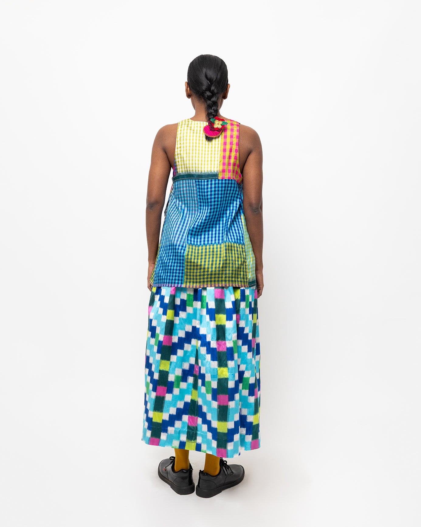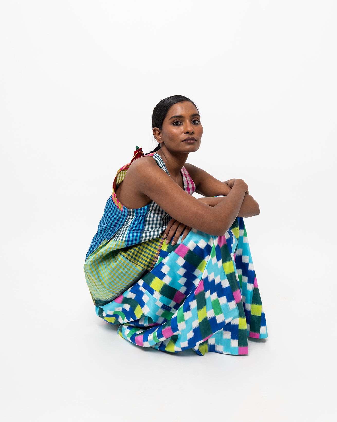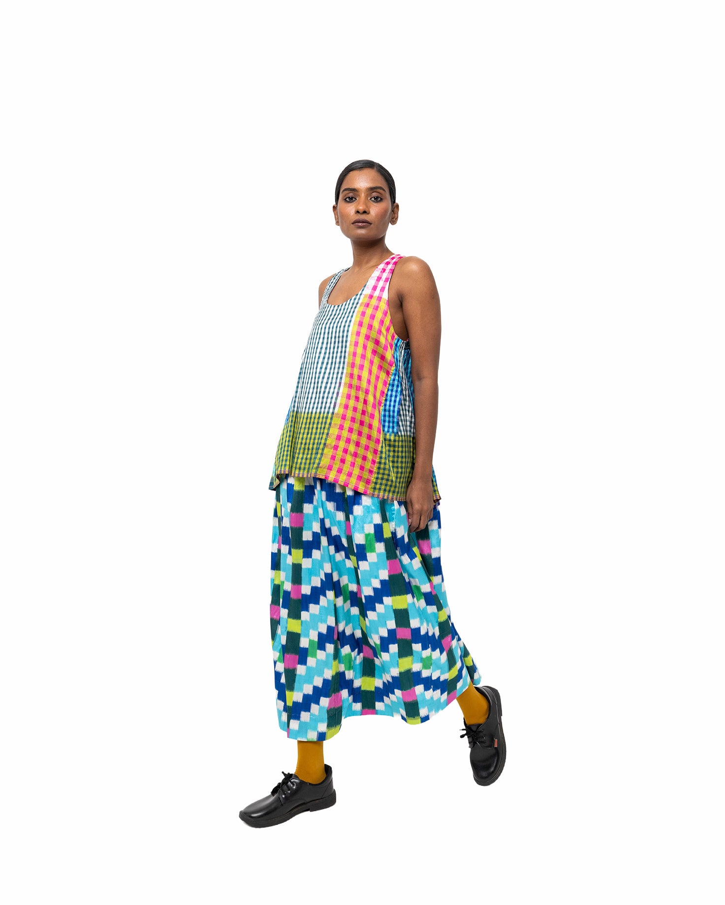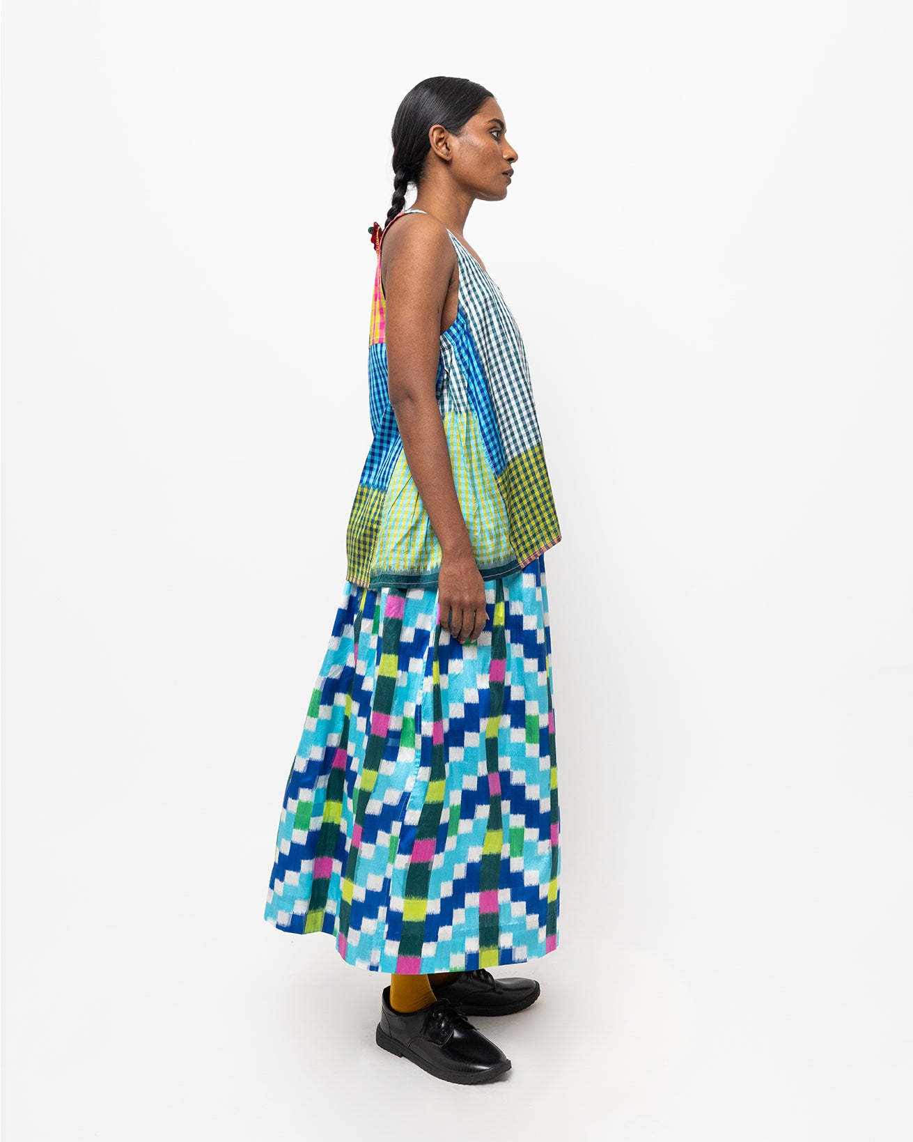 Kaveri skirt in multi-color cotton-silk. Light and fluid, it is made for an effortless, graceful silhouette
