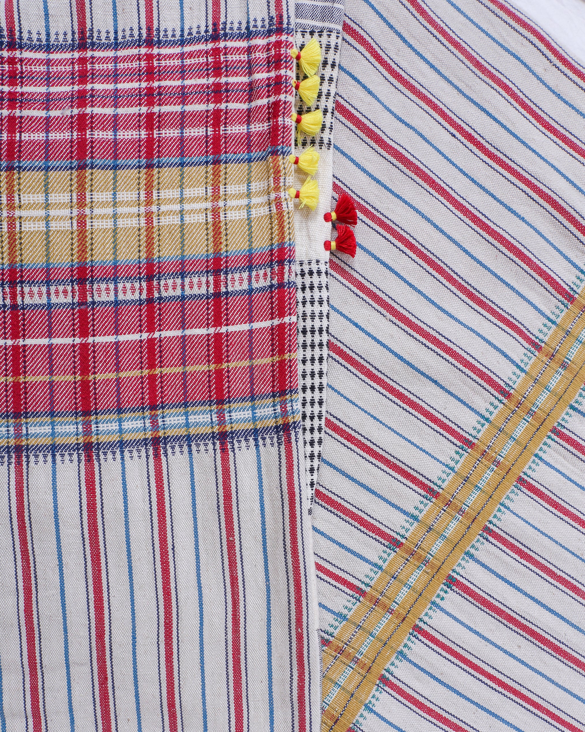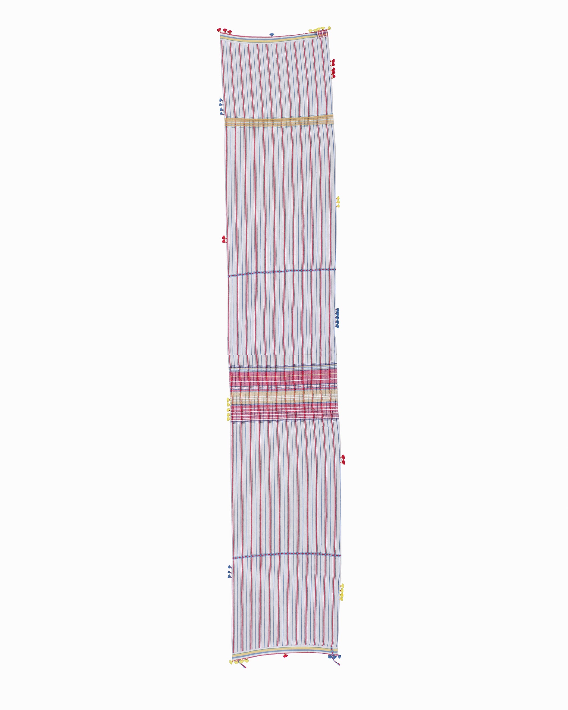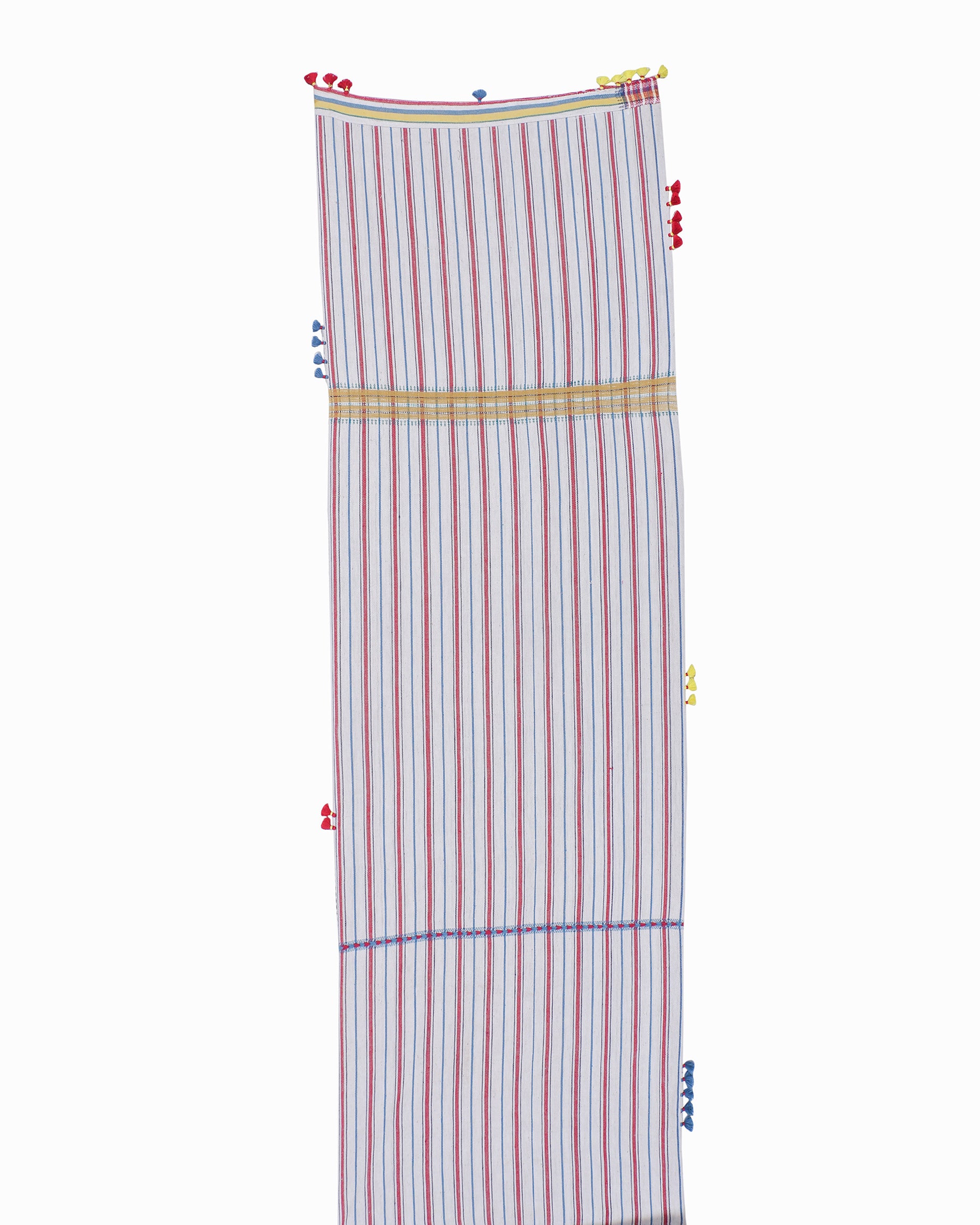 This pure cotton runner, called 'Khaddar' is adorned with authentic Bhujodi weaving and finished with charming tassel edges. The weaving, rich in texture, tells a story of craftsmanship, while the tassels provide a fun contrast, making it a perfect complement rustic interiors. Drape it over a wooden console or lay it across a coffee table to infuse warmth and texture into your space. Pair with a vase of fresh blooms or rustic crockery for a welcoming, homey vibe. The neutral tones make it versatile for any room in your home.