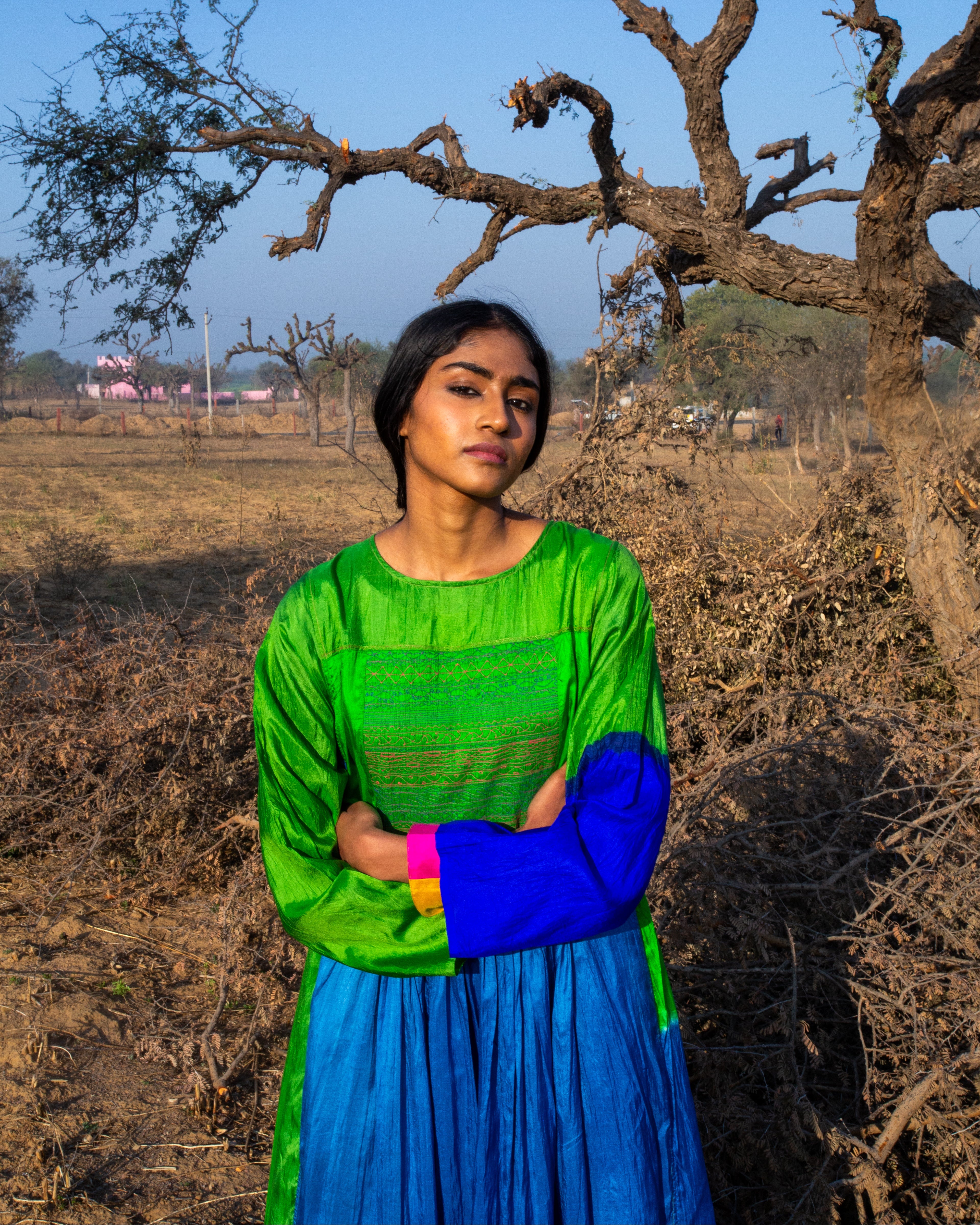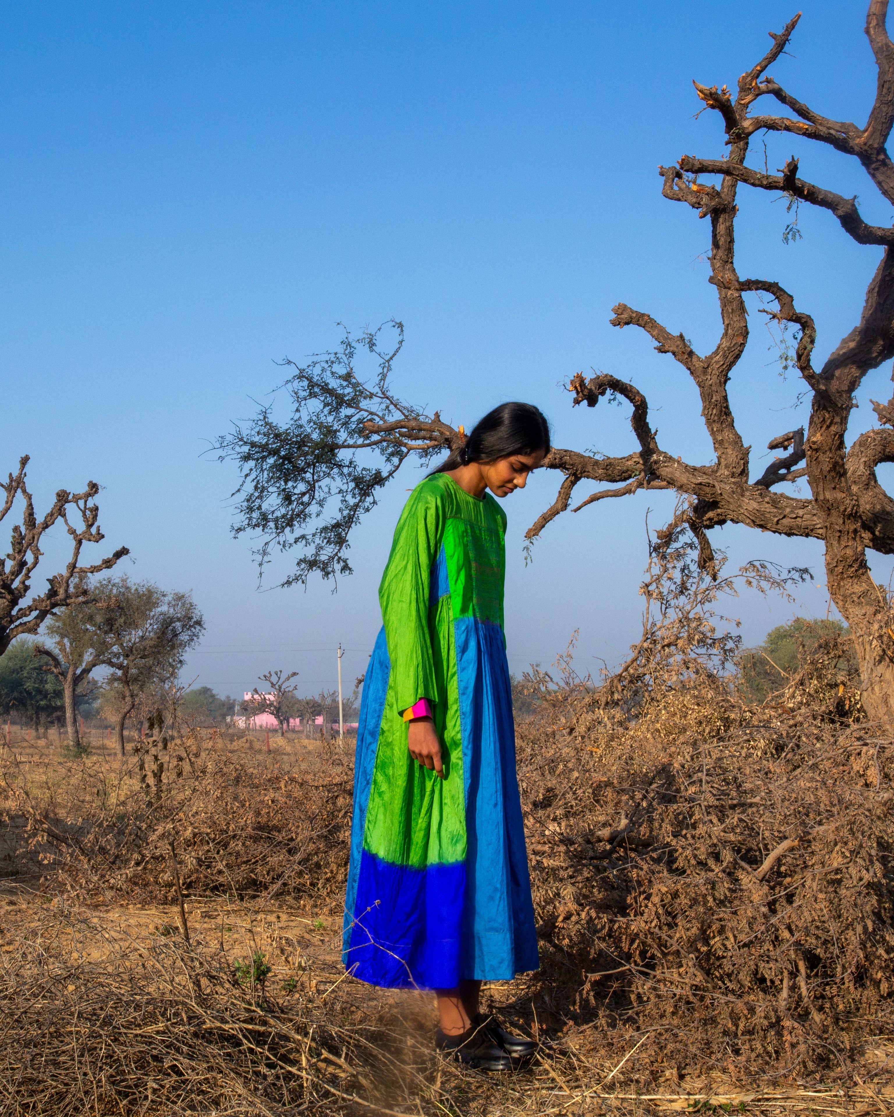 Khoord Dress in lightweight silk crafted using smocking and hand-dyed techniques. Designed for a true-to-size fit, it offers a refined and effortless silhouette.