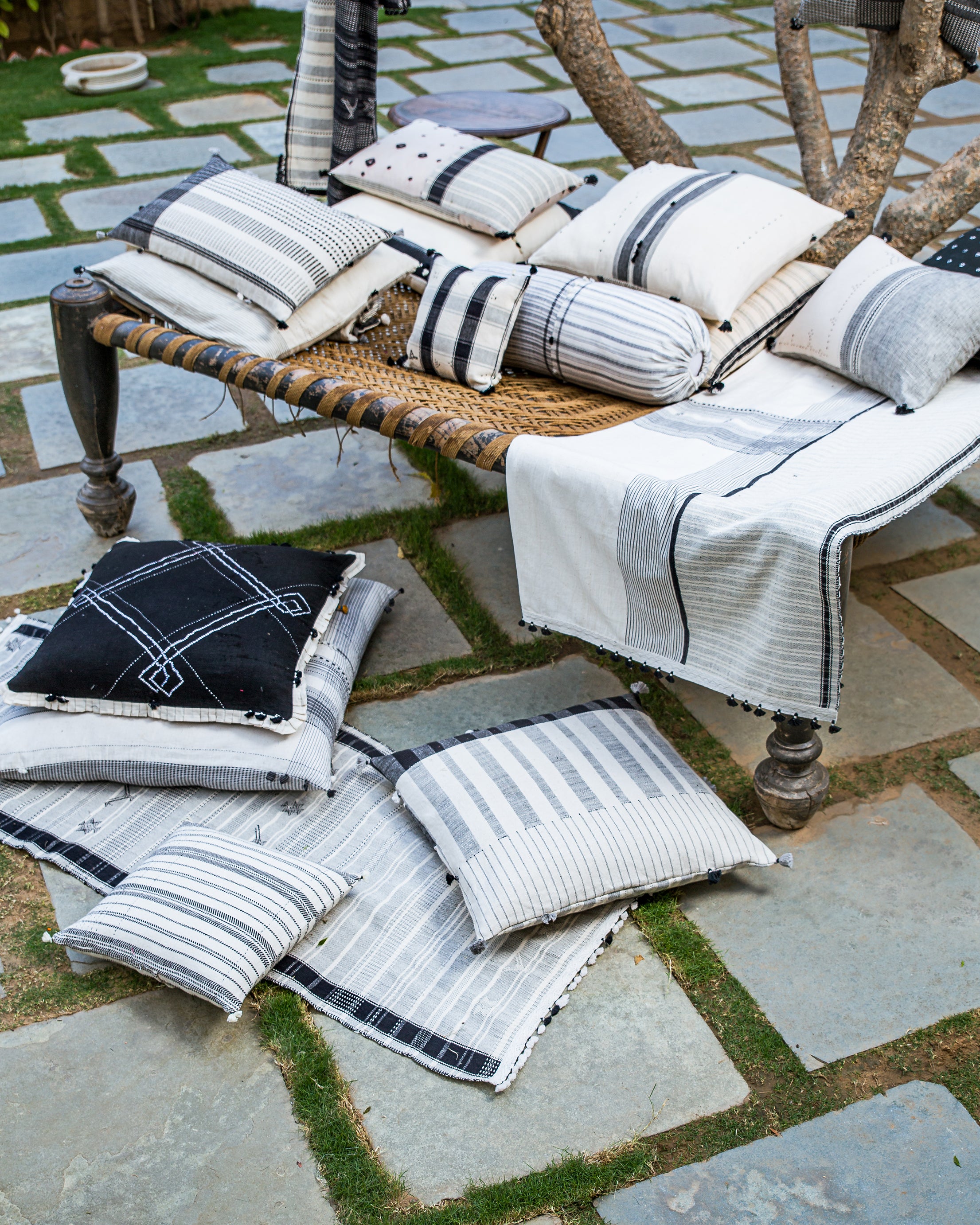 Drawing inspiration from traditional Bhujodi’s weaving traditions, this 'Mahuva' bedcover pairs precise stripes with tassels to create a piece that’s subtle yet striking. It has been crafted using pure cotton fabric, that ensure durability and versatality thoughout all seasons.