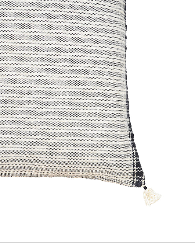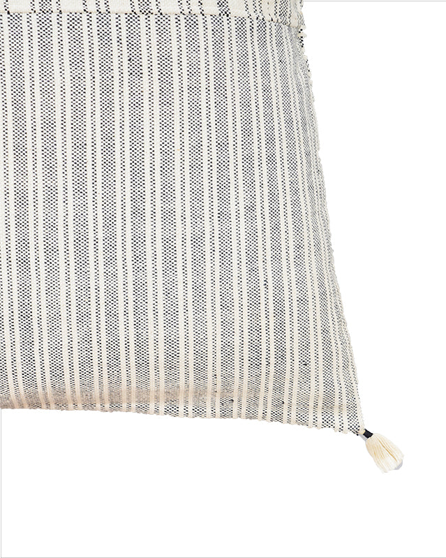 Bring a touch of texture to your living space with this handwoven cushion, called 'Malhar'. Made using the age-old technique of Bhujodi weaving from Kutch, kala cotton base is finished with intricate stripes that create a beautiful texture. Whether you’re styling a modern apartment or a rustic retreat, this cushion fits right in, bringing a sense of continuity to your home.