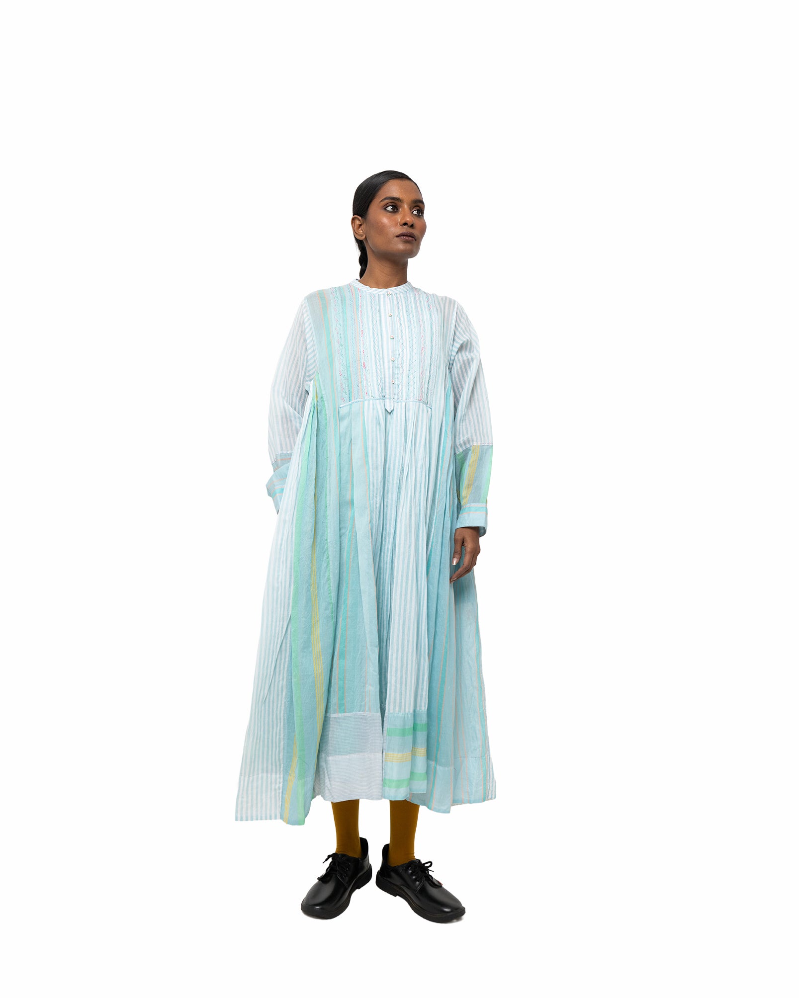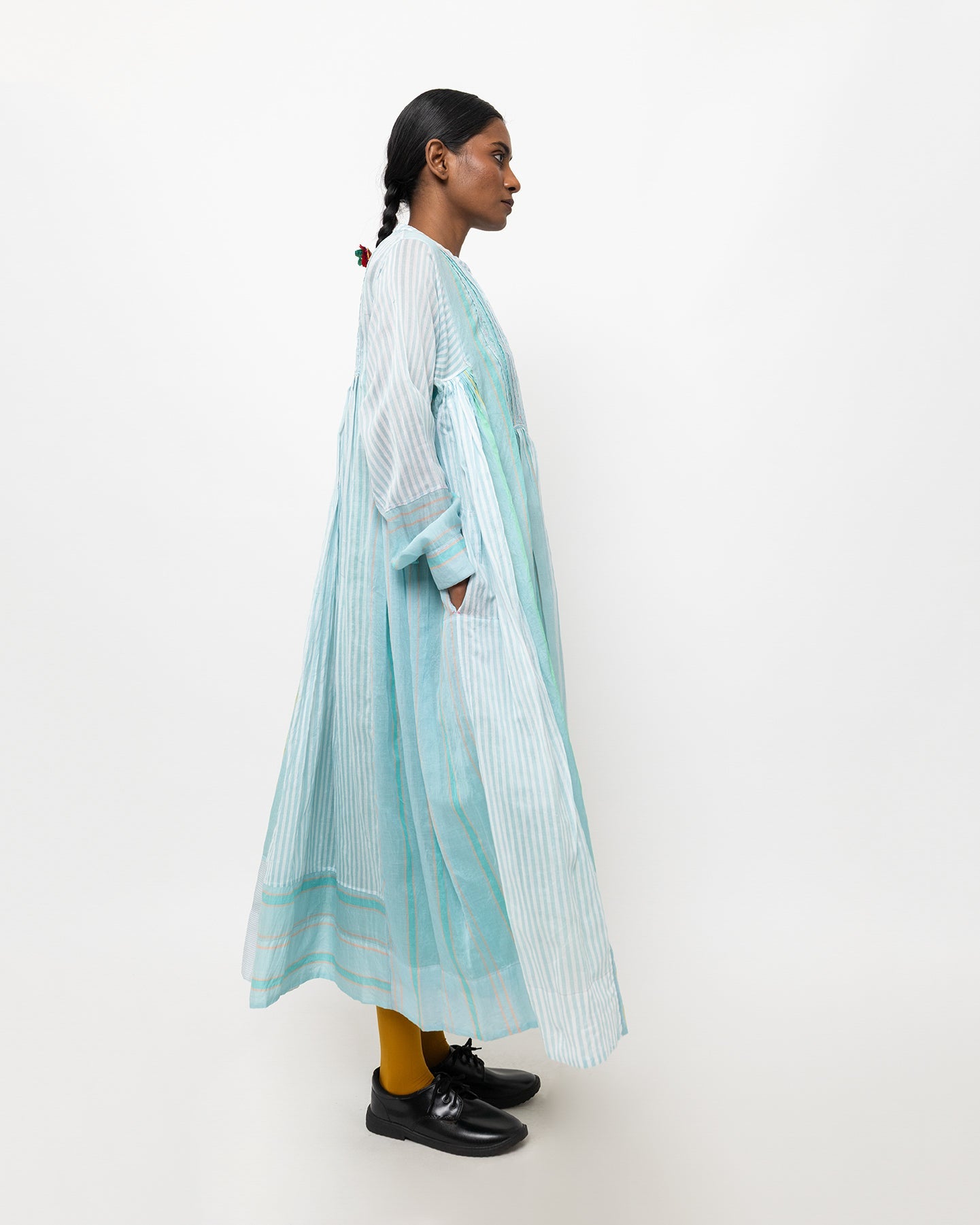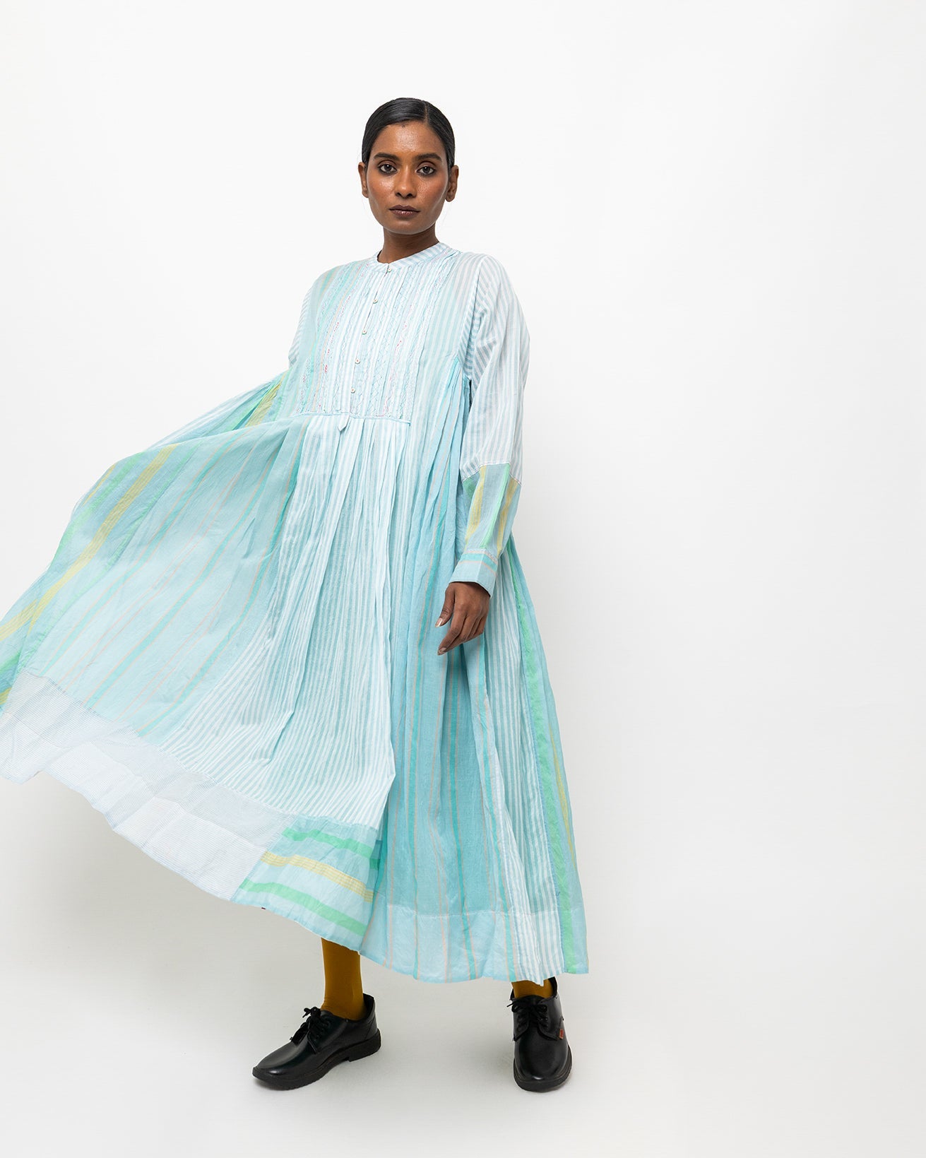 Neerja dress in soft aqua woven cotton-silk. Light and airy, it is made for a relaxed fit