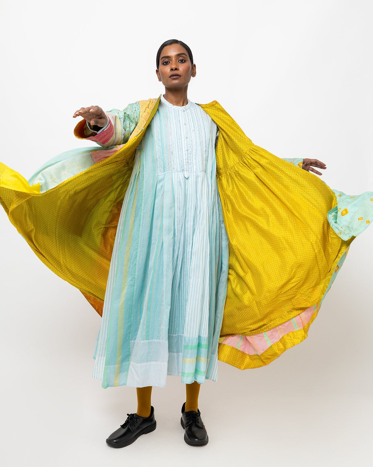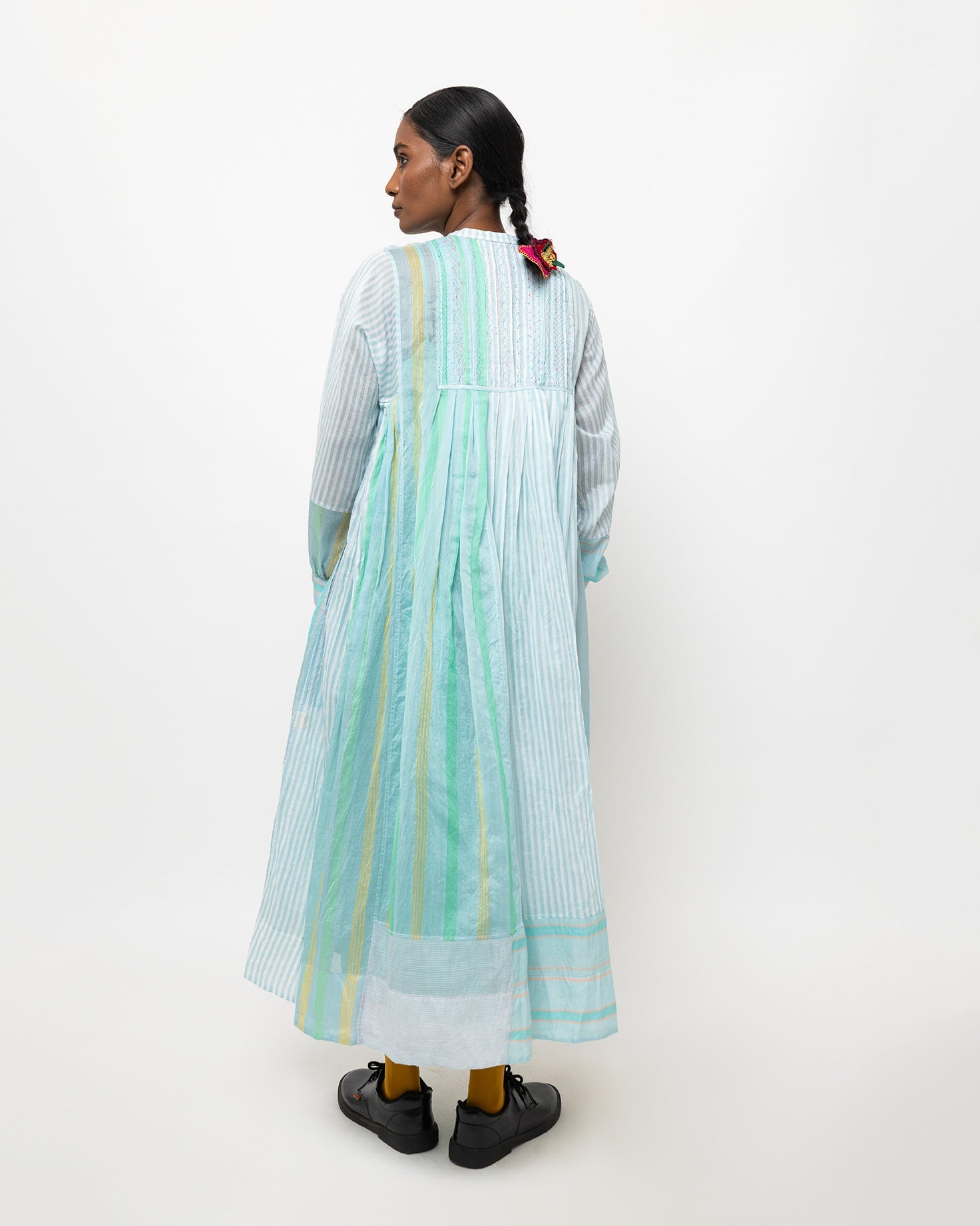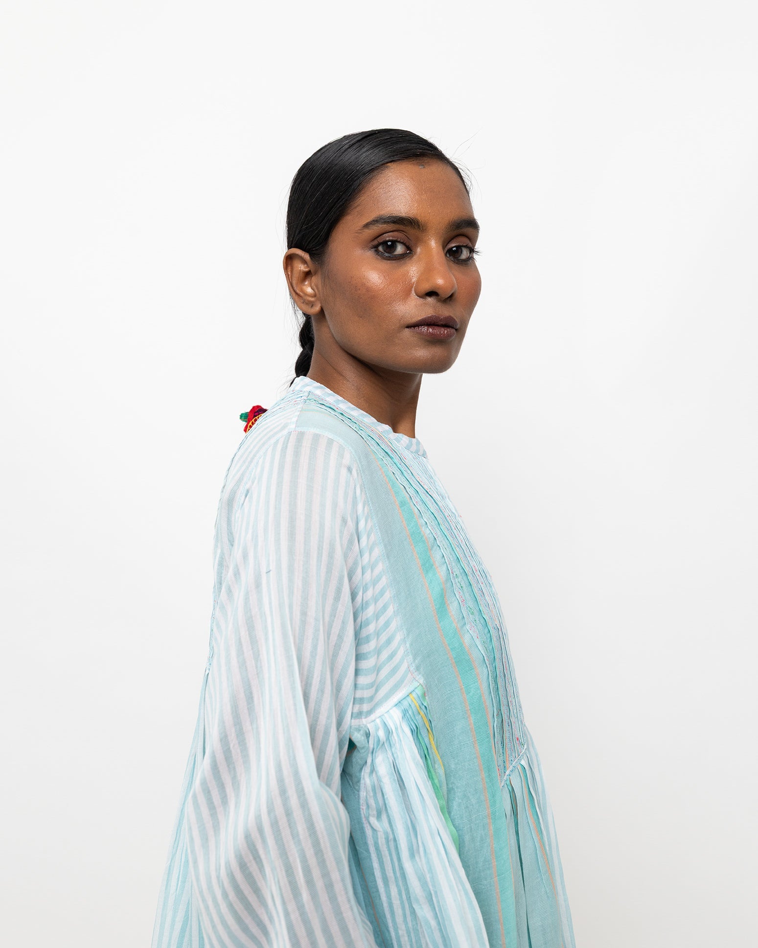 Neerja dress in soft aqua woven cotton-silk. Light and airy, it is made for a relaxed fit