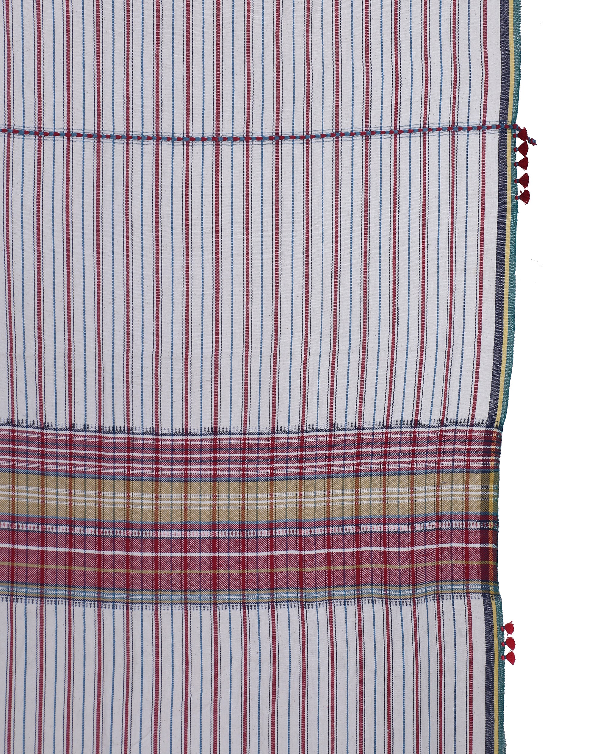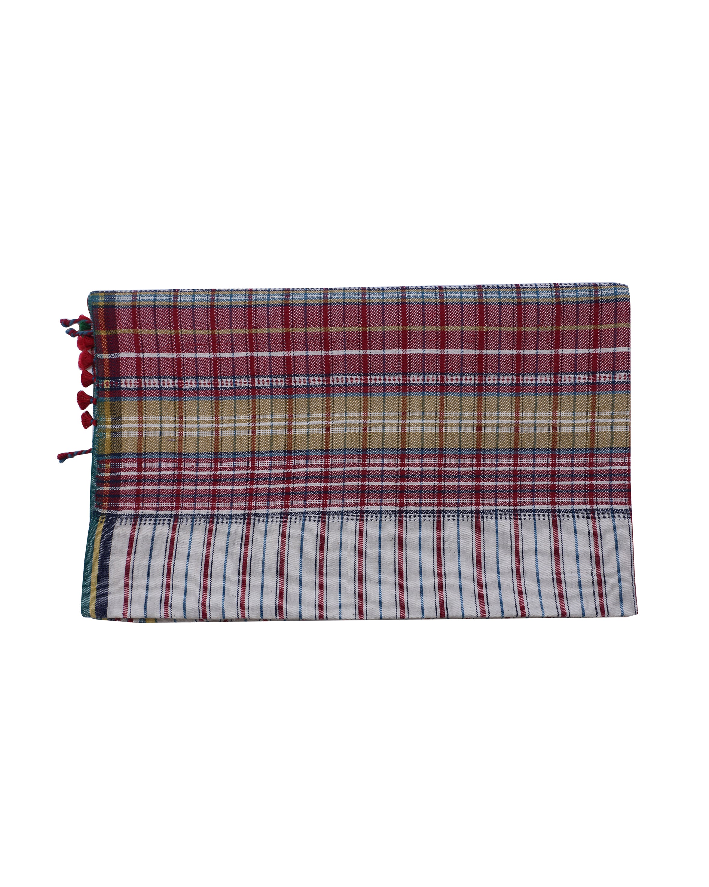 Inspired by hues of a traditional 'gamcha', this throw is crafted with 100% pure breathable cotton. 'Pakhi' features meticulously done bhujodi weaving, in the hues of beige, yellow and red. The playfyl tassel detailing on the edges embodies the essence of handcrafted heritage. A perfect addition to your bedroom or living space