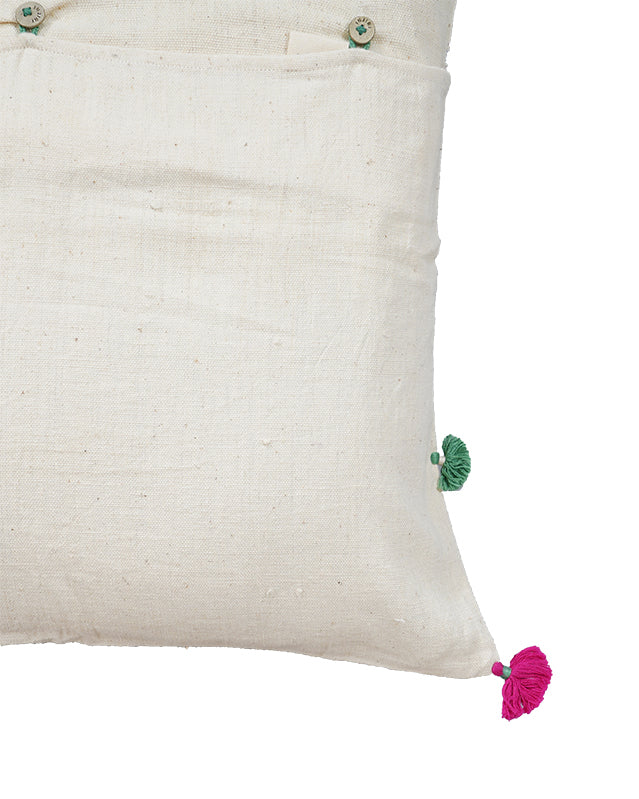 Sanchay—meaning amalgamation —is what this cushion represents. It’s a collection of time, skill, and heritage, woven into kala cotton fabric. Subtle geometric patterns and hand-tied tassels invite touch, while the organic hues blend seamlessly with any decor.