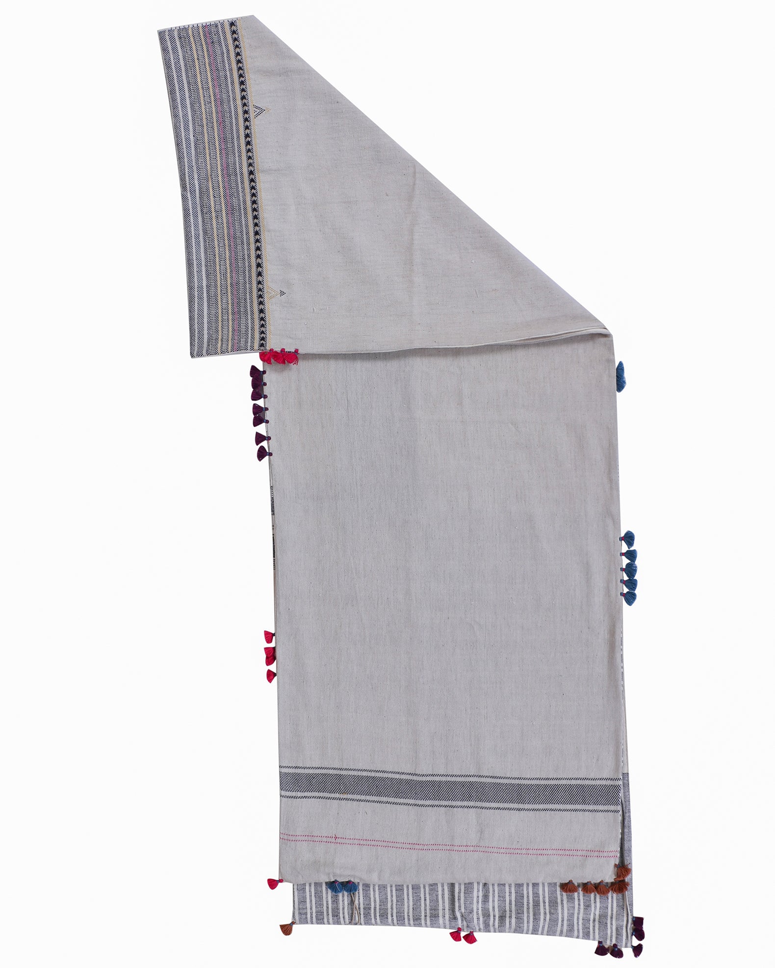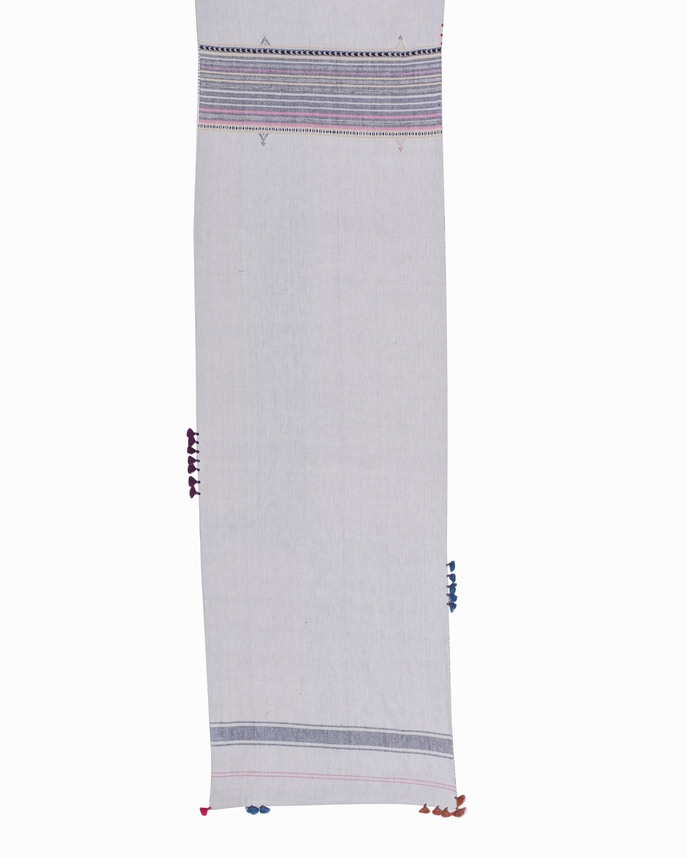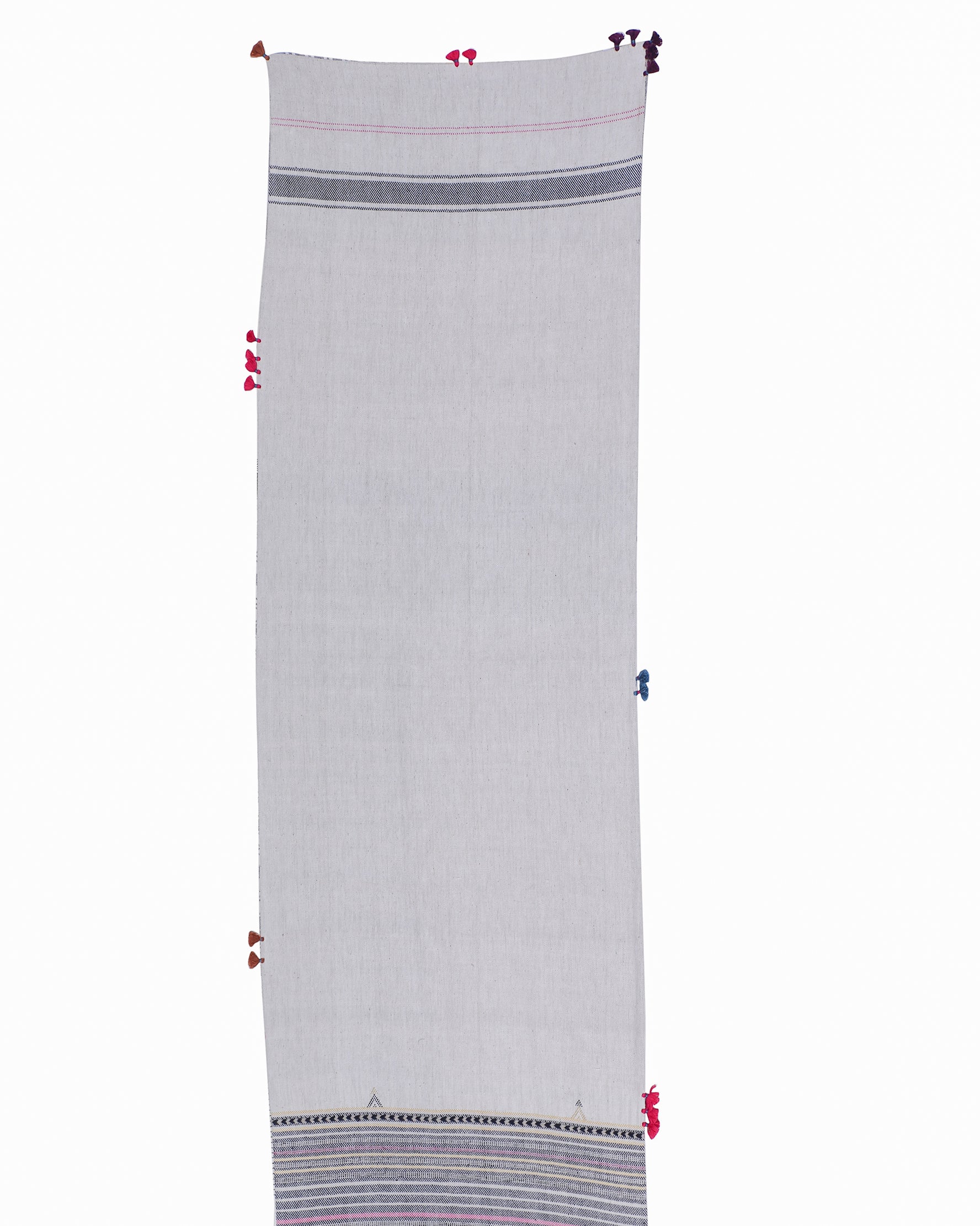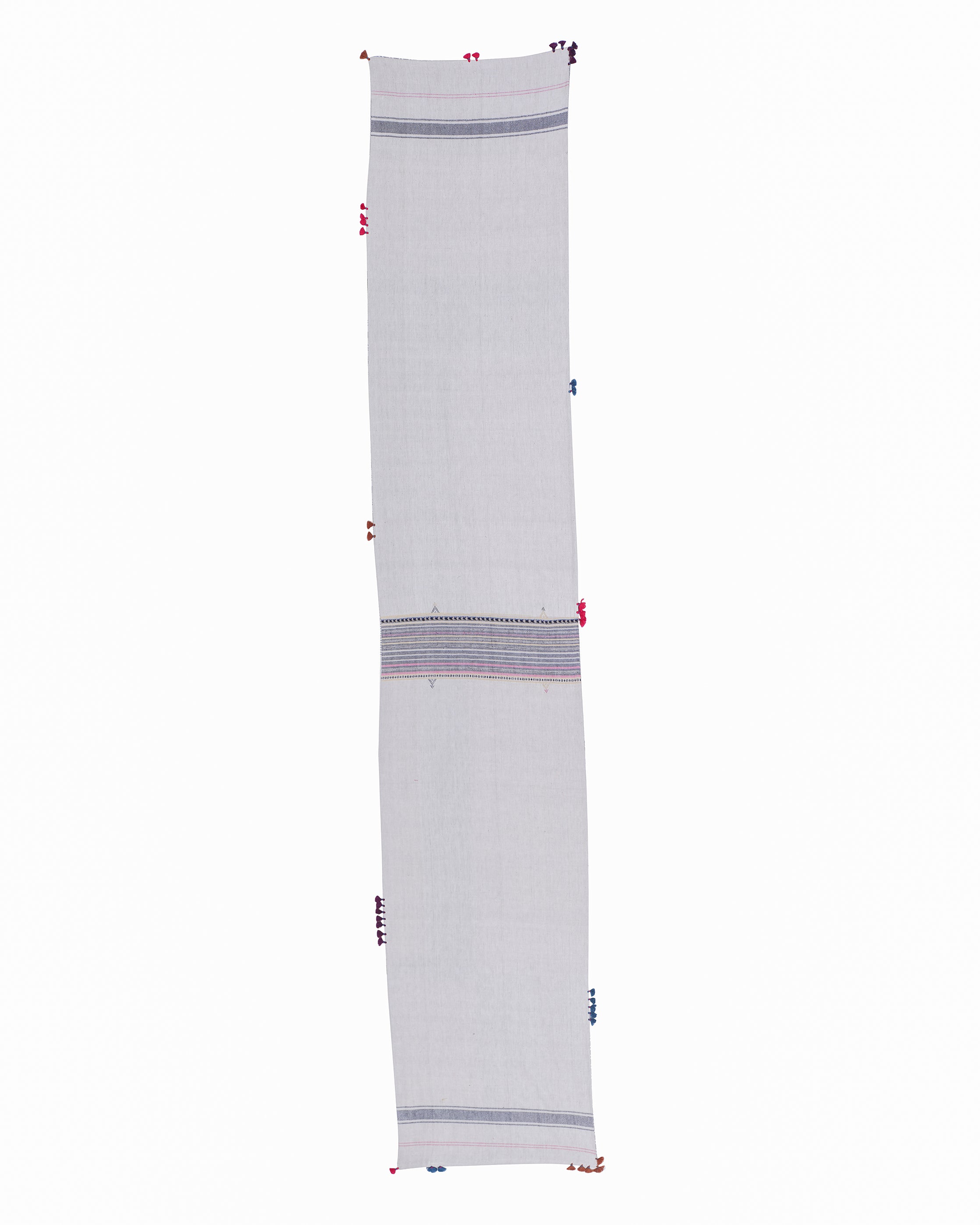 Crafted from pure cotton fabric, this 'Sandook' runner features intricate Bhujodi weaving detailing, a traditional technique from Kachchh, bringing a tactile, organic appeal to your space. The delicate tassels along the edges add a playful yet sophisticated touch. Ideal for elevating dining tables, console tables, or as a statement piece for your entryway, this runner enhances any setting with its subtle charm. Pair it with neutral-colored tableware or minimalist décor for a balanced look, or add vibrant flowers and candles to highlight its intricate craftsmanship. It’s perfect for both casual gatherings and more refined occasions.