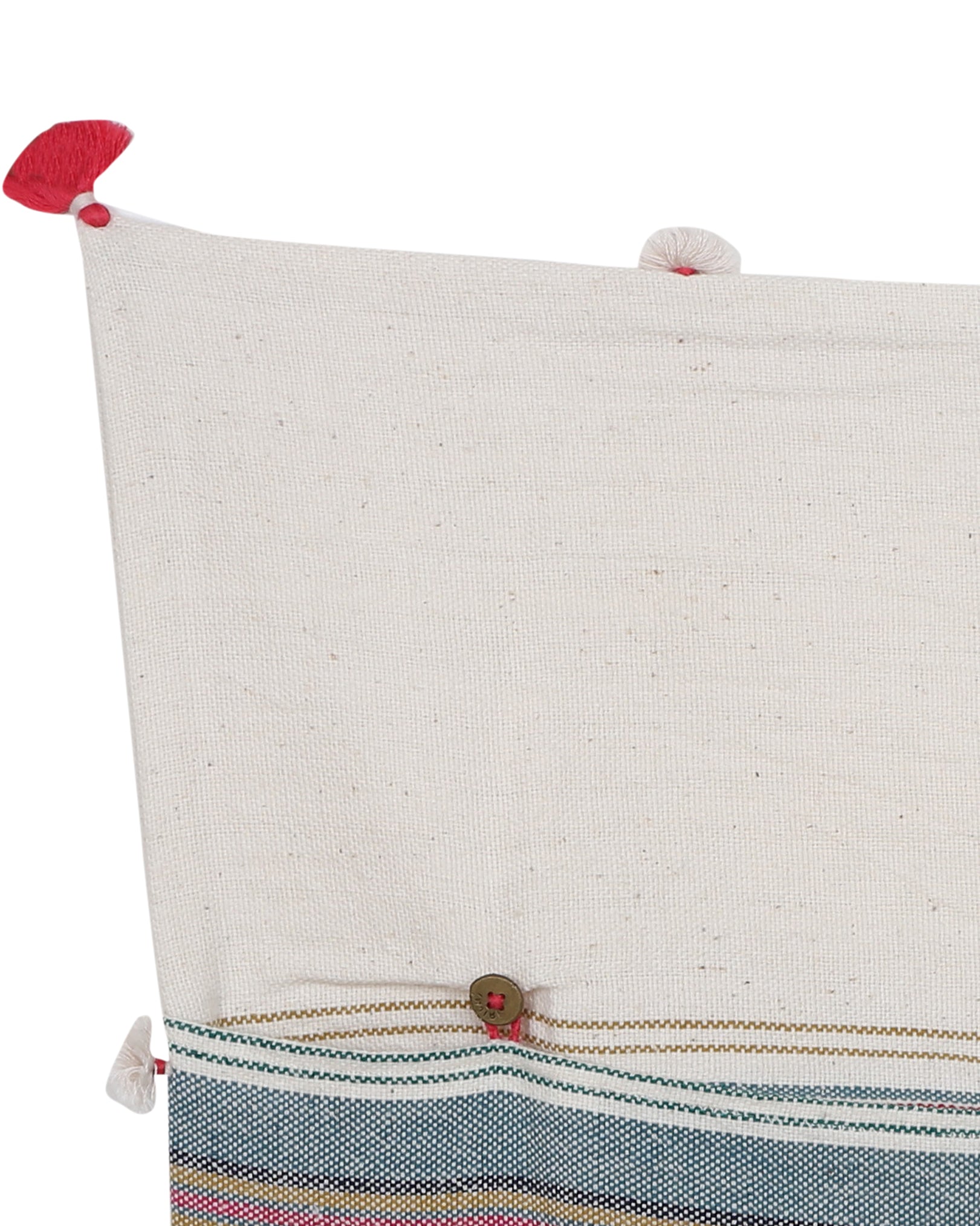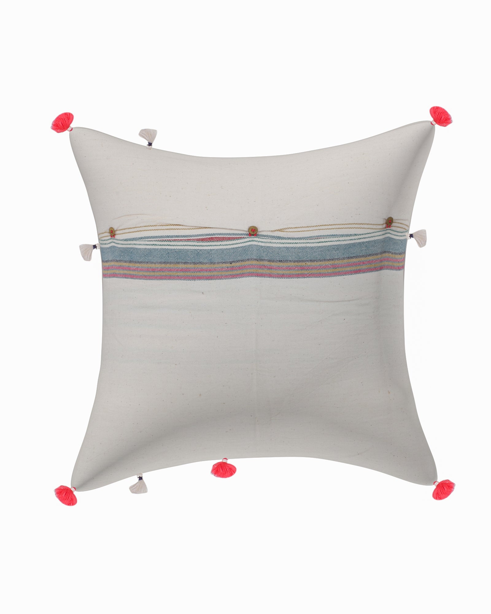 Inspired by the earth’s palette, this 'Seeti' cushion reflects the raw, organic beauty of mitti. The soft pure cotton texture is unrefined yet elegant, woven with hand-spun threads in bhujodi technique. Its subdued tones and artisanal feel make it a grounding presence in your home.