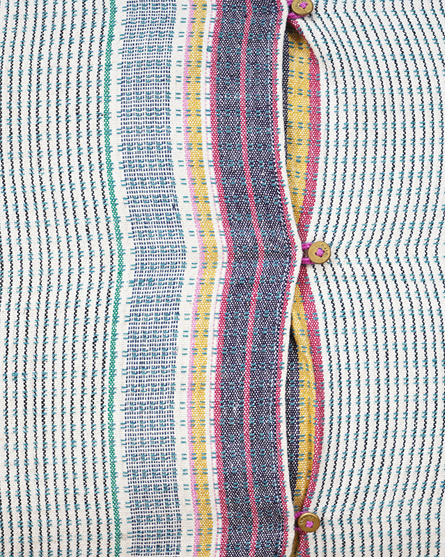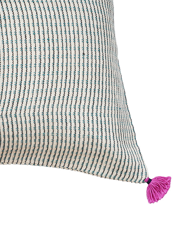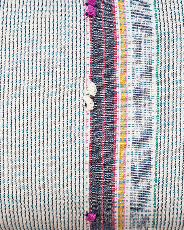 This Injiri cushion combines clean lines with the beauty of handwoven bhujodi fabric, finished with a subtle tassels. 'Sitara's minimalist and clean design lets the craftsmanship shine, making it perfect for homes that value simplicity and meaning in every detail.