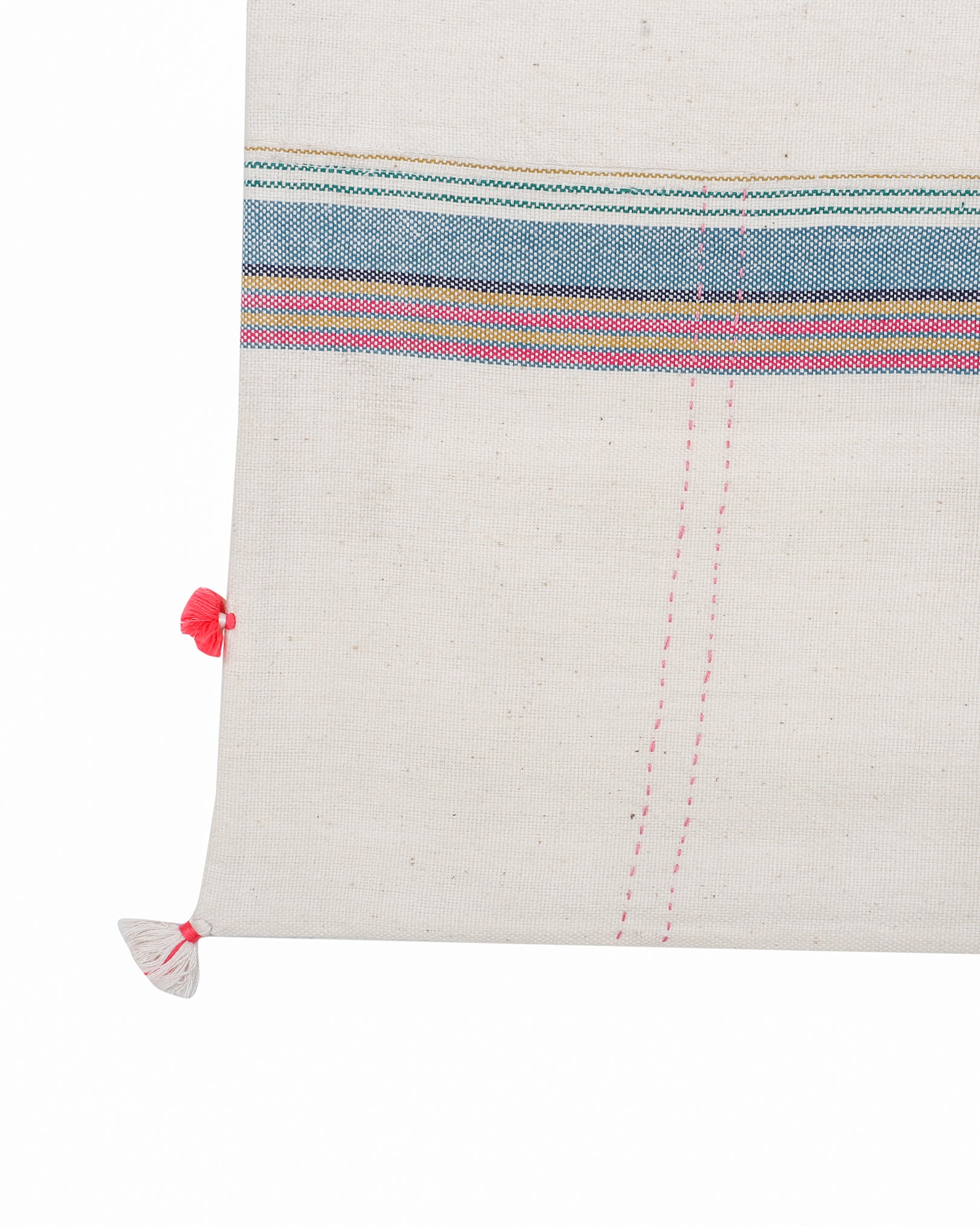 Much like a 'Sur' —a single note—this cushion holds the essence of harmony. Handwoven with a meditative rhythm using pure cotton fabric, its texture is both grounding and uplifting. With its soft hued strippes and delicate tassel detailing, it's a perfect addition to spaces seeking quiet, soulful accents.